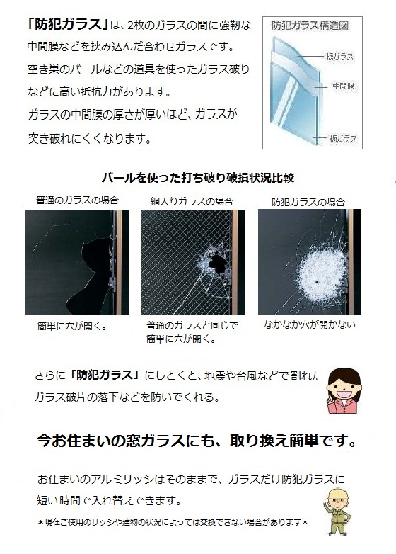 足利市のサッシ・ガラス修理・網戸張替え・鍵・防犯グッズ・カーポート・テラス…は高久硝子店へどうぞ。